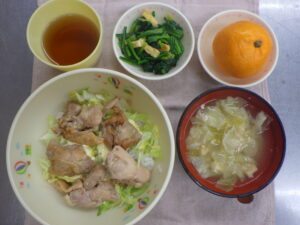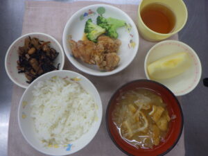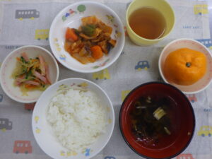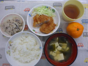 今日の給食 12月6日(金) 2024年12月6日 最終更新日時 : 2024年12月6日 nagafusanishi 給食:ごはん なめこ汁(豆腐 なめこ) 焼き鳥風(鶏モモ ピーマン 長ねぎ) 酢の物(きゅうり 人参 わかめ ハム) フルーツ(みかん) おやつ:ヨーグルト ビスケット