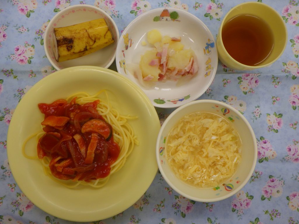 今日の給食 7月30日(水) 2025年7月30日 最終更新日時 : 2025年7月30日 nagafusanishi 給食:なすとベーコンのトマトスパゲティ(スパゲティ なす ベーコン 玉葱 トマト にんにく) 玉子スープ(卵 長ねぎ) ジャーマンポテト(じゃが芋 ベーコン 玉葱) フルーツ(バナナ) おやつ:麦茶 いなり寿司