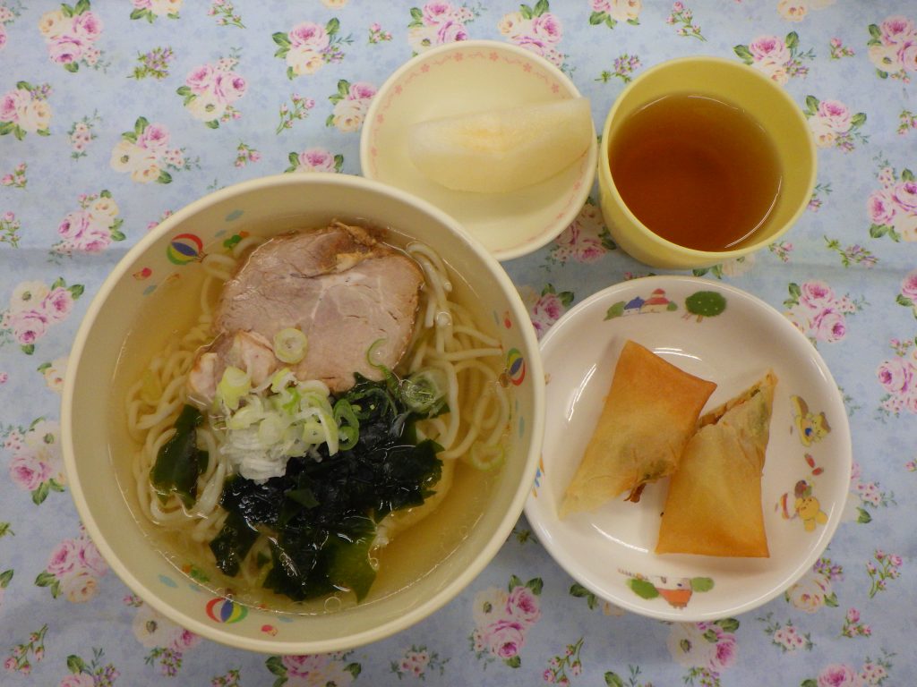 今日の給食 9月26日(金) 2025年9月26日 最終更新日時 : 2025年9月26日 nagafusanishi 給食:塩ラーメン(中華麺 わかめ チャーシュー 長ねぎ) 春巻き(春巻きの皮 しいたけ 竹の子 人参 ピーマン 春雨) フルーツ(梨) おやつ:麦茶 いなり寿司