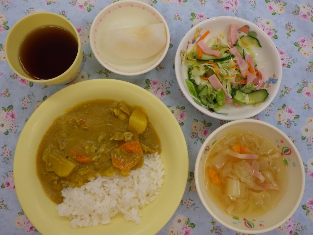 今日の給食 10月8日(水) 2025年10月8日 最終更新日時 : 2025年10月8日 nagafusanishi 給食:カレーライス(白米 豚肉 じゃが芋 人参 玉葱) コンソメスープ(キャベツ 人参 玉葱 ベーコン コンソメ) 野菜サラダ(レタス きゅうり キャベツ 人参 ハム) フルーツ(梨) おやつ:牛乳 ごまトースト