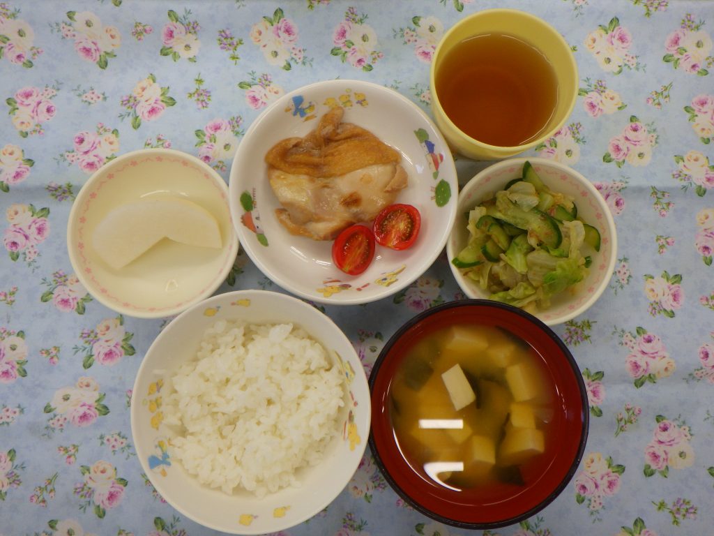 今日の給食 10月20日(月) 2025年10月20日 最終更新日時 : 2025年10月20日 nagafusanishi 給食:ごはん みそ汁(豆腐 わかめ) 鶏の照り焼き(鶏肉 にんにく) 付合せ(ミニトマト) きゅうりとキャベツの和え物(きゅうり キャベツ おかか) フルーツ(梨) おやつ:牛乳 コーンフレーク