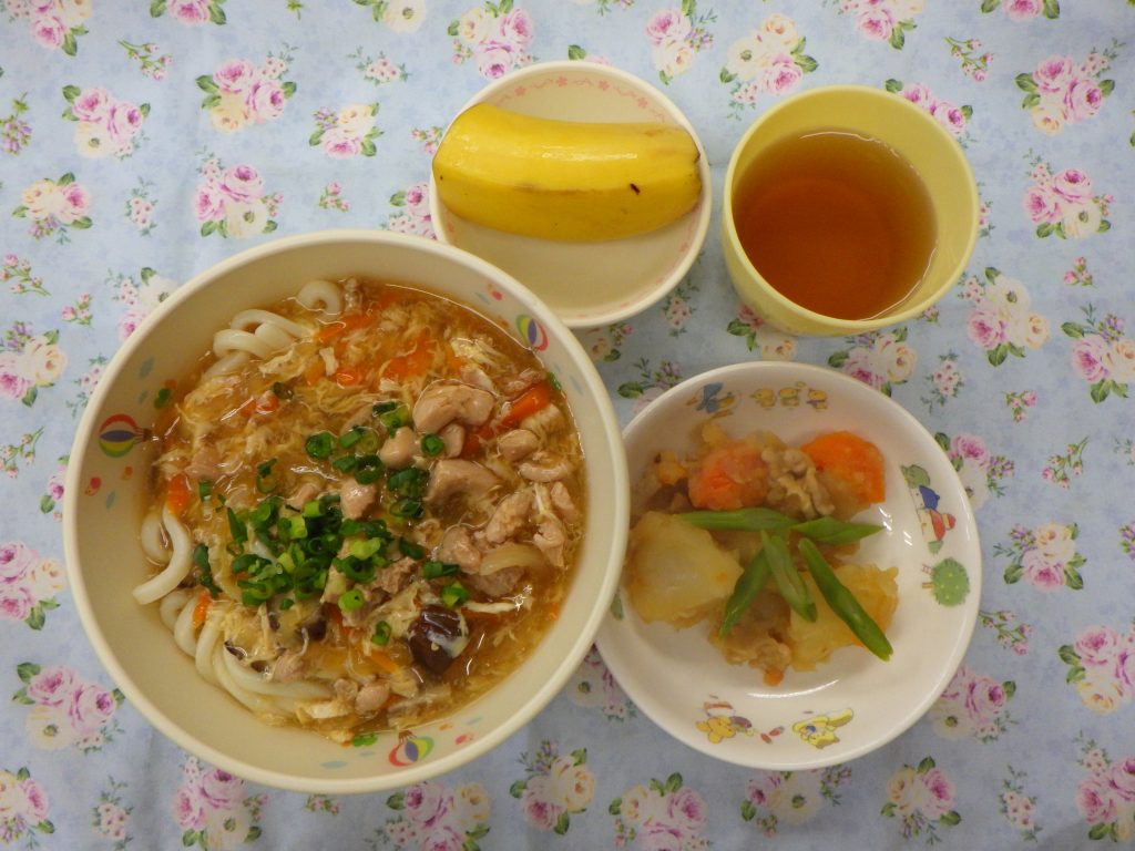今日の給食 11月7日(金) 2025年11月7日 最終更新日時 : 2025年11月7日 nagafusanishi 給食:玉子とじうどん(うどん 鶏肉 にんじん 玉ねぎ しいたけ 卵 こねぎ) 肉じゃが(じゃがいも 豚肉 玉ねぎ にんじん さやえんどう) フルーツ(バナナ) おやつ:さつま芋の重ね煮 麦茶
