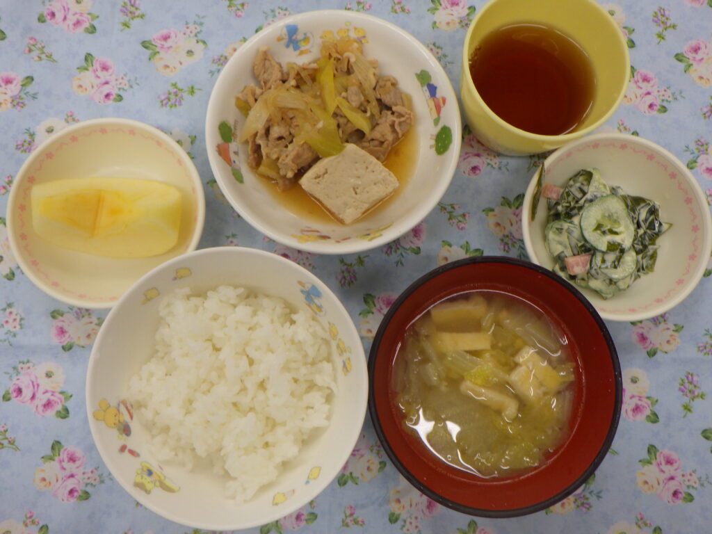 今日の給食 11月25日(火) 2025年11月25日 最終更新日時 : 2025年11月25日 nagafusanishi 給食:ごはん みそ汁(白菜 油揚げ) 肉豆腐(豚肉 豆腐 長ねぎ しらたき) 海草サラダ(わかめ きゅうり ハム マヨネーズ) フルーツ(りんご) おやつ:牛乳 ハムチーズ春巻き