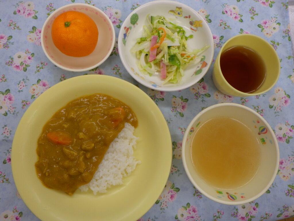 今日の給食 1月5日(月) 2026年1月5日 最終更新日時 : 2026年1月5日 nagafusanishi 給食:カレーライス(豚肉 じゃが芋 にんじん 玉ねぎ) オニオンスープ(玉ねぎ) 野菜サラダ(レタス きゅうり キャベツ にんじん 玉ねぎ ハム) フルーツ(みかん) おやつ:ホットケーキ 牛乳