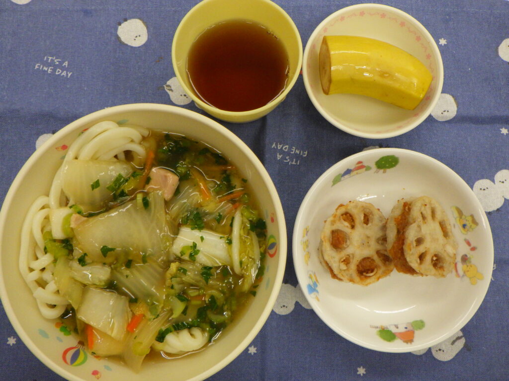 今日の給食 1月7日(水) 2026年1月7日 最終更新日時 : 2026年1月7日 nagafusanishi 給食:白菜うどん(うどん 鶏モモ 白菜 人参 小松菜 生姜) レンコンのはさみ揚げ(レンコン 鶏挽き) フルーツ(バナナ) おやつ:麦茶 七草粥