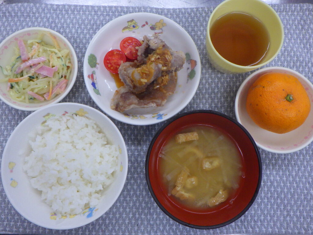 今日の給食 1月27日(火) 2026年1月27日 最終更新日時 : 2026年1月27日 nagafusanishi 給食:ごはん みそ汁(大根 油揚げ) 豚肉の台湾風(豚肉 生姜 長ねぎ ごま油) 付合せ(ミニトマト) 春雨のマヨサラダ(春雨 きゅうり 人参 ハム マヨネーズ) フルーツ(みかん) おやつ:麦茶 味噌田楽(厚揚げ 里芋)