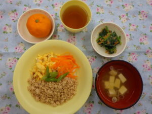 今日の給食 2月6日(金) 2026年2月6日 最終更新日時 : 2026年2月6日 nagafusanishi 給食:三食丼(白米 鶏挽き 人参 卵 いんげん) すまし汁(豆腐 長ねぎ) ごま和え(ほうれん草 人参 すりごま) フルーツ(みかん) おやつ:牛乳 ピザトースト