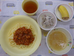 今日の給食 2月13日(金) 2026年2月13日 最終更新日時 : 2026年2月13日 nagafusanishi 給食:ごはん みそ汁(豆腐 わかめ) 鰆の中華あんかけ(さわら 人参 竹の子 しいたけ 玉葱 生姜) 酢の物(きゅうり わかめ ハム) フルーツ(バナナ) おやつ:牛乳 手作りクッキー