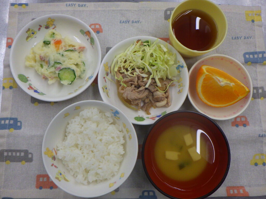今日の給食 2月25日(水) 2026年2月25日 最終更新日時 : 2026年2月25日 nagafusanishi 給食:ごはん みそ汁(豆腐 わかめ) 豚の生姜焼き(豚肉 玉ねぎ 生姜) 付合せ(キャベツ) ポテトサラダ(じゃがいも 玉ねぎ 人参 きゅうり ハム) フルーツ(清見オレンジ) おやつ:フルーツゼリー
